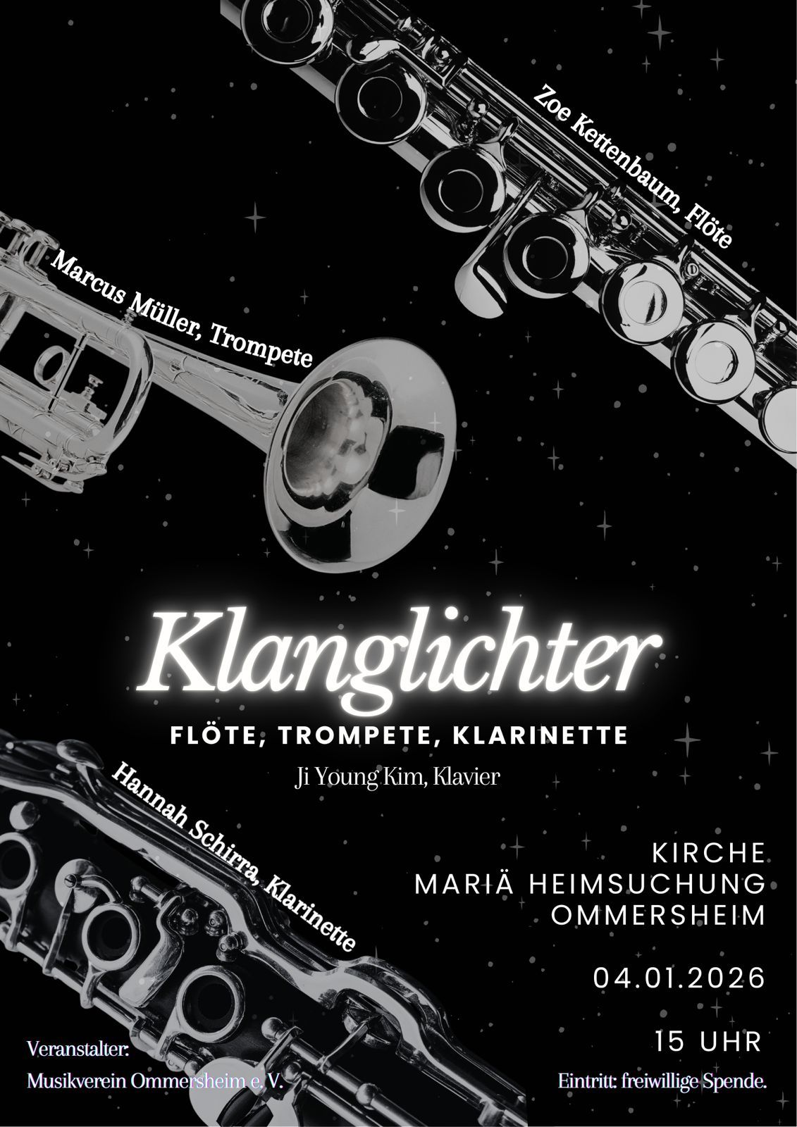 Unter dem Motto „Klanglichter“ präsentieren die drei Solisten Hannah Schirra, Marcus Müller und Zoe Kettenbaum zusammen mit der Pianistin Ji Young Kim am 4. Januar ein abwechslungsreiches Programm in der Kirche Mariä Heimsuchung in Ommersheim.