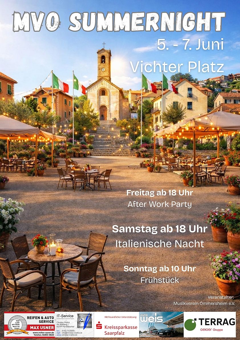 Wenn Anfang Juni der Vichter Platz in goldenes Abendlicht getaucht wird, beginnt in Ommersheim etwas Neues: die „MVO Summernight“ im Herzen von Ommersheim!